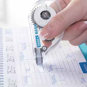 O rolo de correção tesa BASIC aplica facilmente uma tira de fita de correção autoadesiva branca para uma rápida correção de erros em qualquer documento.