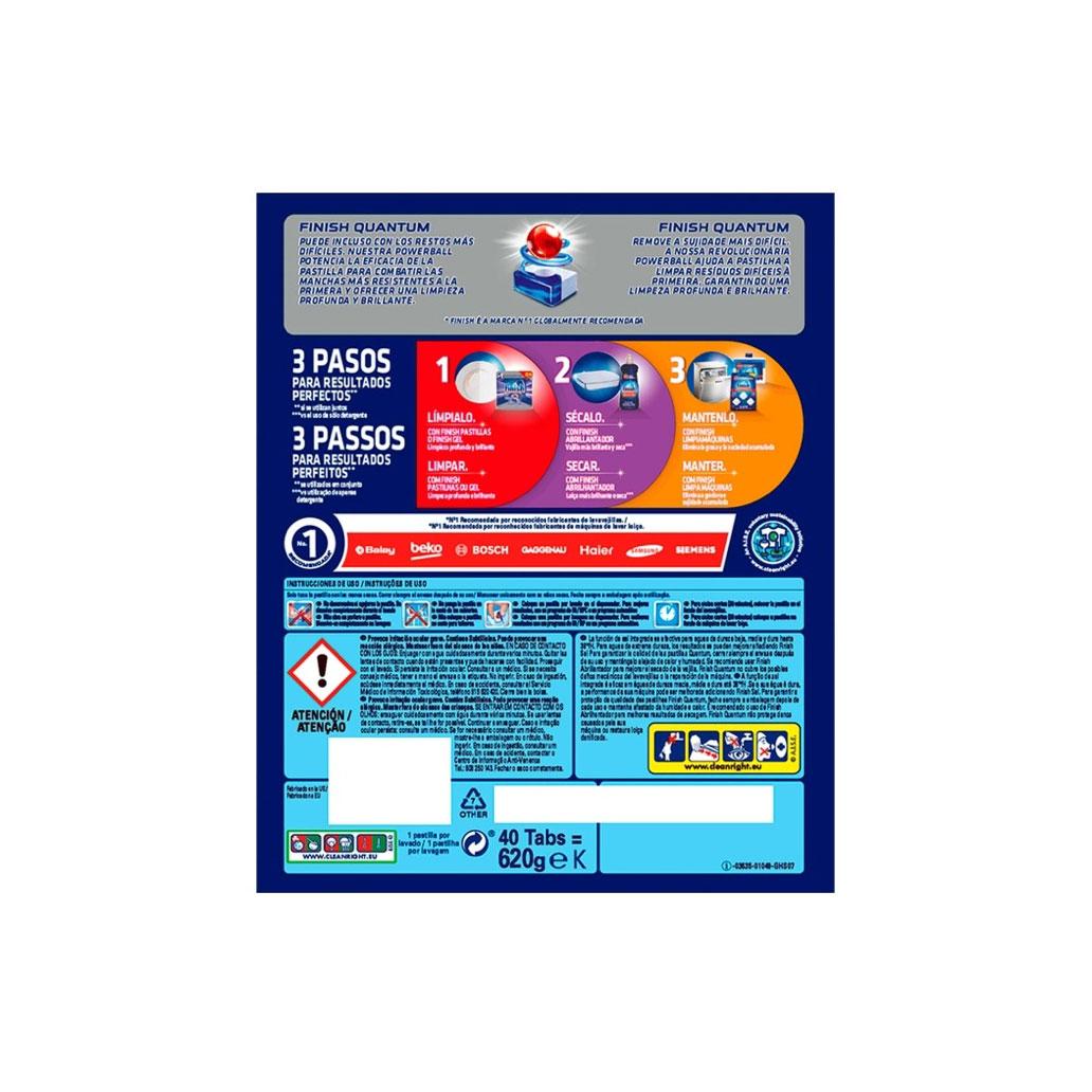 Descrição Finish Quantum Remove a sujidade mais difícil. A nossa revolucionária Powerball ajuda a pastilha a limpar resíduos difíceis à primeira, garantindo uma limpeza profunda e brilhante.