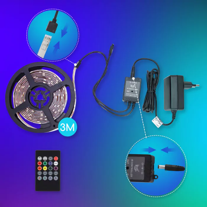 Fita LED RGB 3m – Aigostar | 3000K (Branco Quente) + Controle Remoto + Sincronização Musical