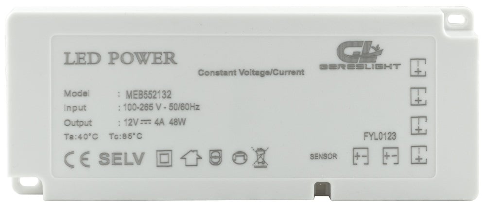 Este transformador fornece uma tensão constante de 12V de forma a preservar os circuitos electrónicos das lâmpadas de LED, prolongando assim o seu tempo útil de vida.